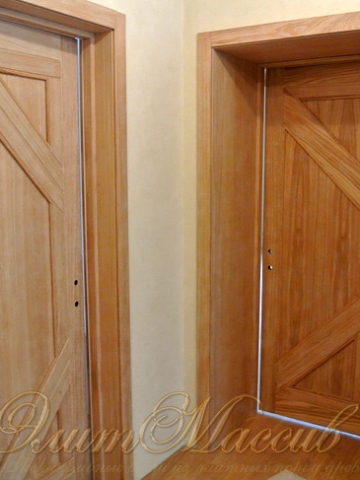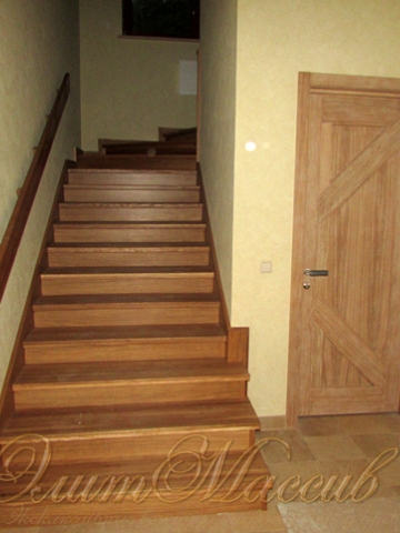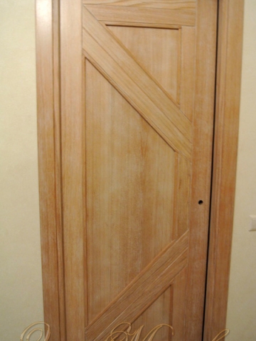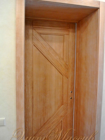 Заказчик, удивительного и особенного вкуса видения дизайна интерьера, предложил нашей компании произвести и смонтировать двери, лестницу и гардеробные шкафы в своём загородном доме Московской обл. Вся продукция выполнена из массива дуба в натуральном цвете по эскизам заказчика. На все поверхности изделий, ввиду глубокой текстуры массива дуба втёрта белая патина. Одностворчатые межкомнатные двери выполнены в глухом и остеклённом виде. Глубокие проёмы обрамлены доборами из МДФ, фанерованными шпоном дуба. Полотна с наплывом, короб с уплотнителем, наличники телескопические. Лестница также производилась по дизайну от заказчика в массиве дуба. Конструкция лестницы несложная. Подъём с первого на второй этаж с поворотными ступенями.