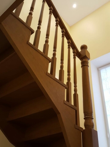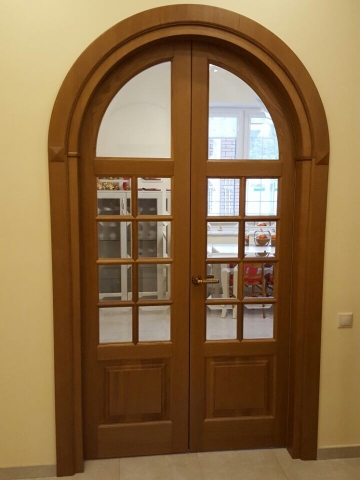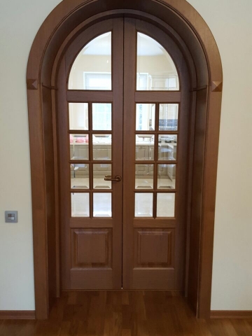 В мае 2017 года из сайта позвонил заказчик с вопросом об изготовлении двух двустворчатых дверей арочного типа и лестницы на косоуре и тетиве. Заказчик построил загородный дом и его нужно было обустроить межкомнатными дверьми и лестницей с первого на второй этаж и добавить к лестнице баллюстраду, как итог полноты конструкции. Проблема была в том. что арочные проёмы для дверей были разного размера, а стены для лестницы не были несущими и конструкцию не могли выдержать.