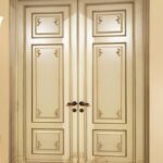 Нестандартные двустворчатые межкомнатные двери из массива цвета слоновая кость
