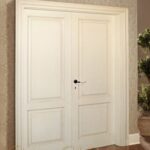 Классические двойные распашные межкомнатные двери из массива белого цвета