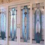 Вместо филёнок, по вертикали сделан элегантный плёночный витраж, который по красоте и качеству не уступает дорогому витражу Тиффани.