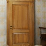 Полотно с наплывом, короб с уплотнителем. Наличники канелюрные 110 мм, фризовая панель, карниз и подпяточники, как декоративные элементы.